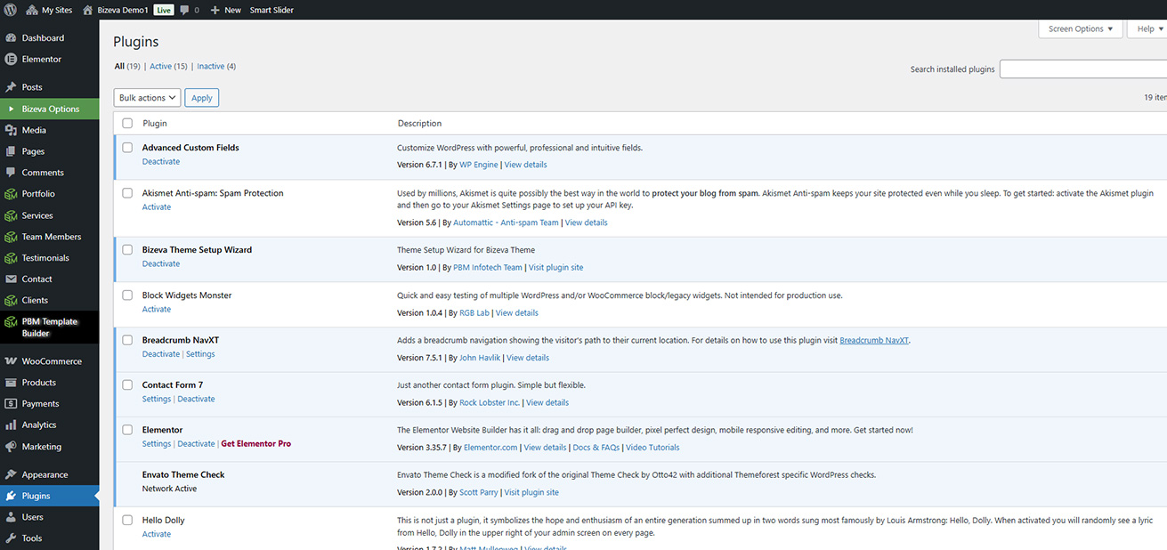 Our Bizeva theme comes with some usefull plugins. Some plugins are required and some are recommended plugins. Here are details or each plugin.