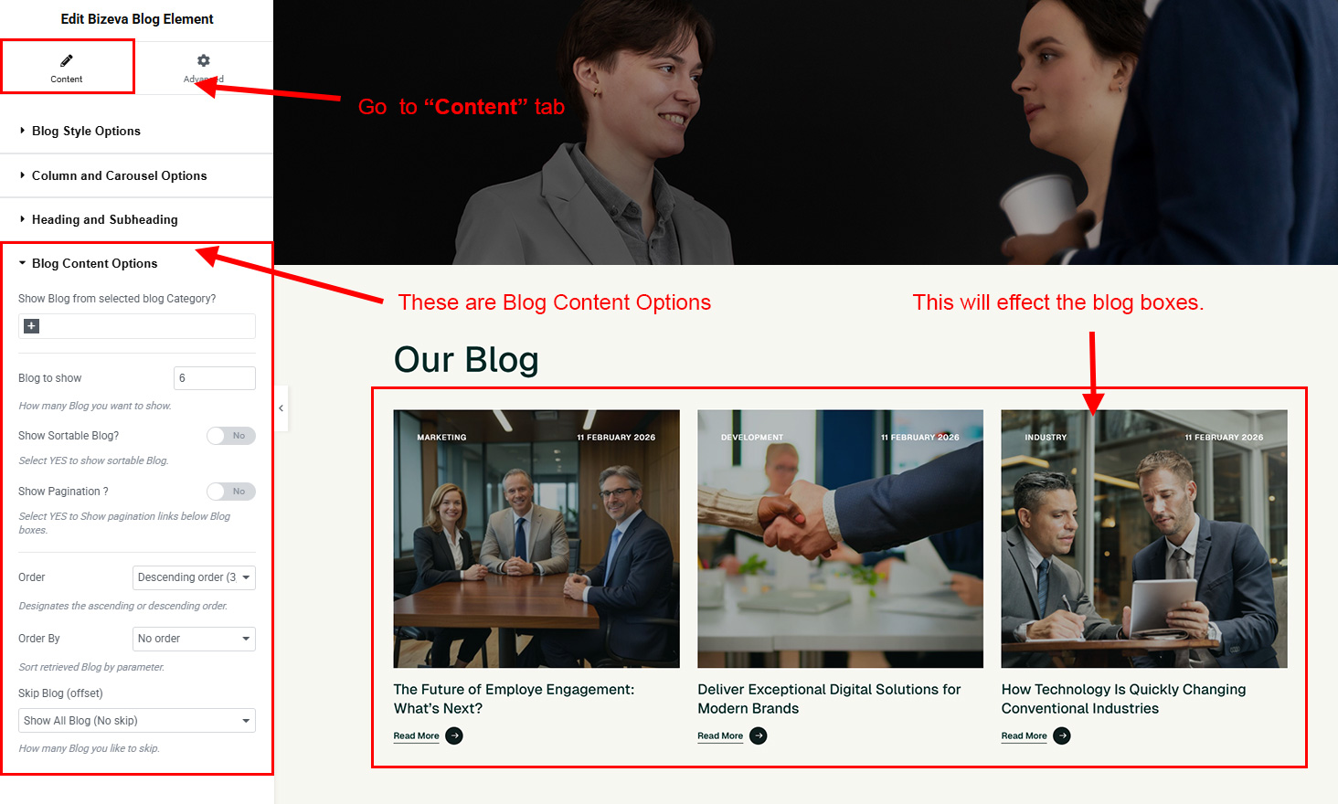 There are lot's of options to select in this Blog element.