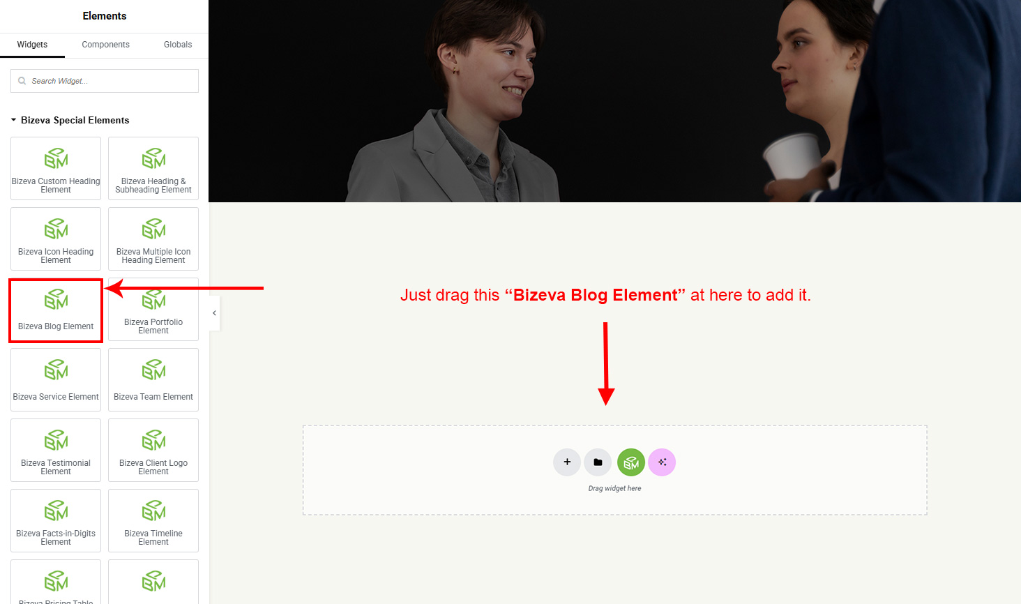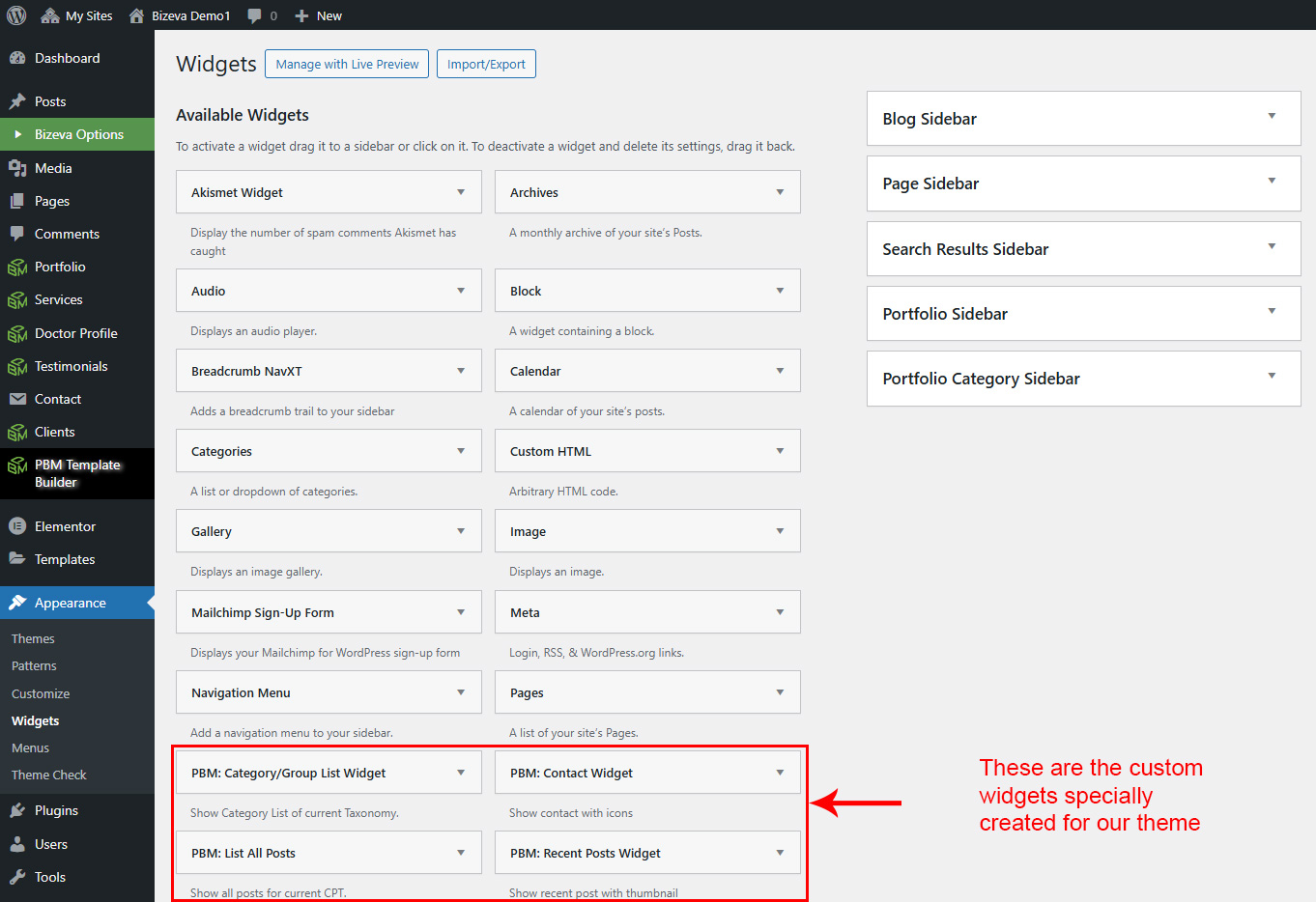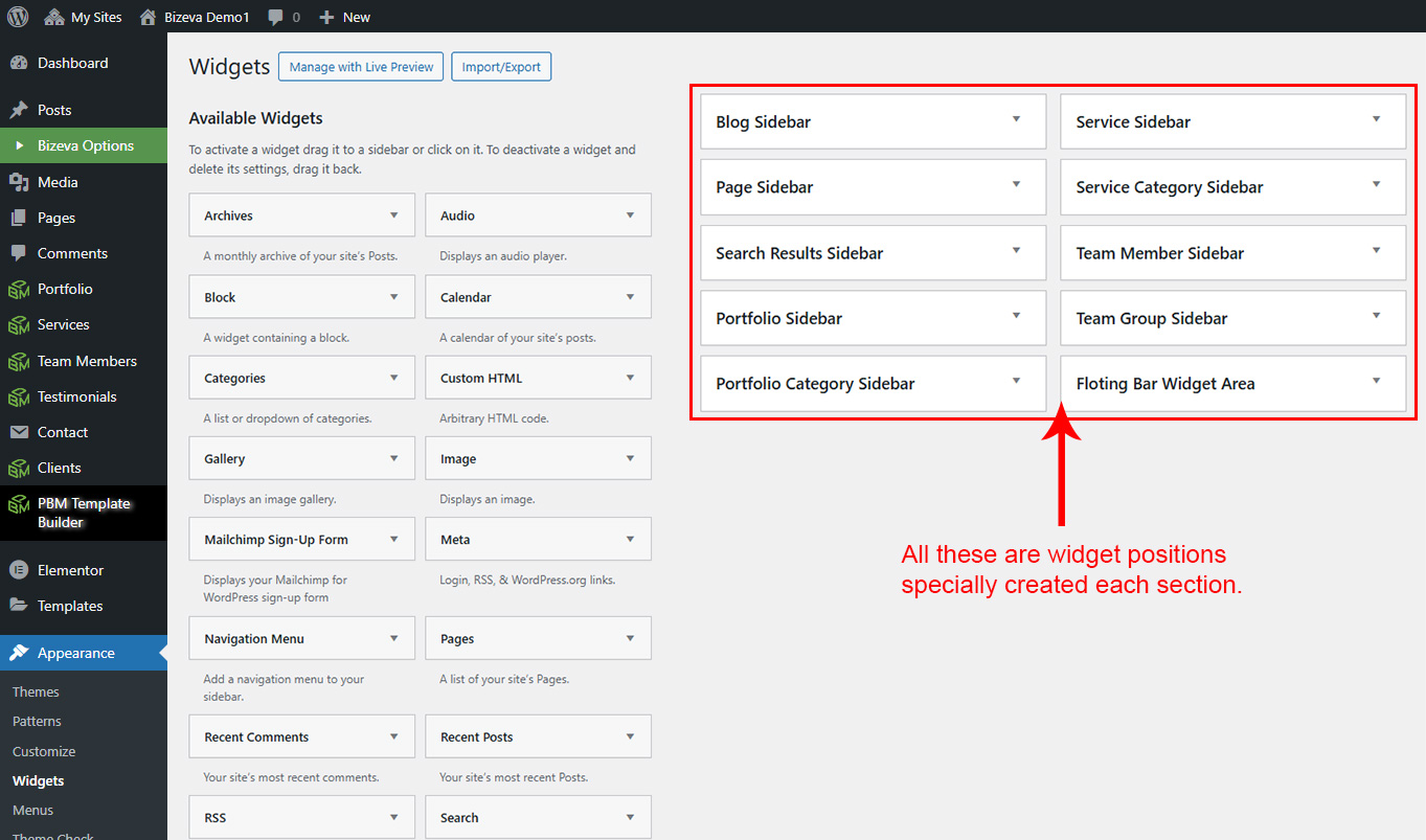 There are some widgets created specially for Bizeva theme. Here are the widgets: