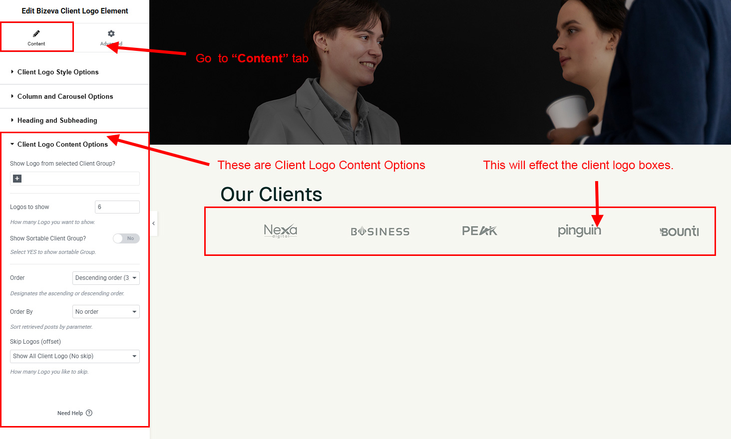 You can select the client-logo options here. Like how many client-logo you like to show, show client-logo from selected group (category), client-logo order etc.