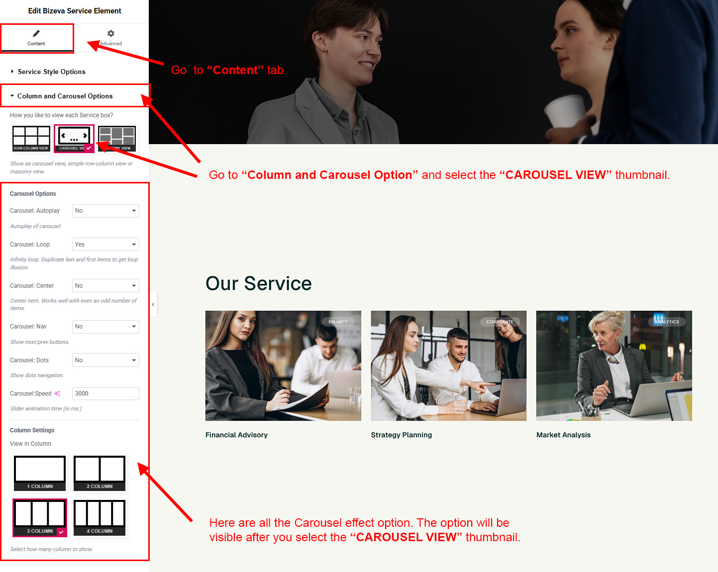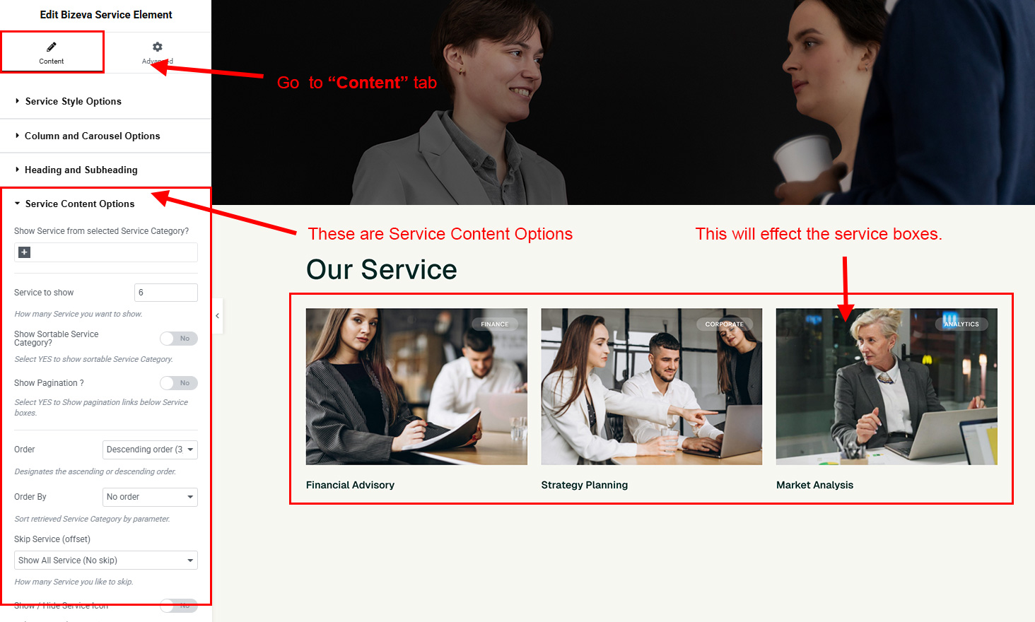 You can select the service options here. Like how many service you like to show, show service from selected category, service order etc.