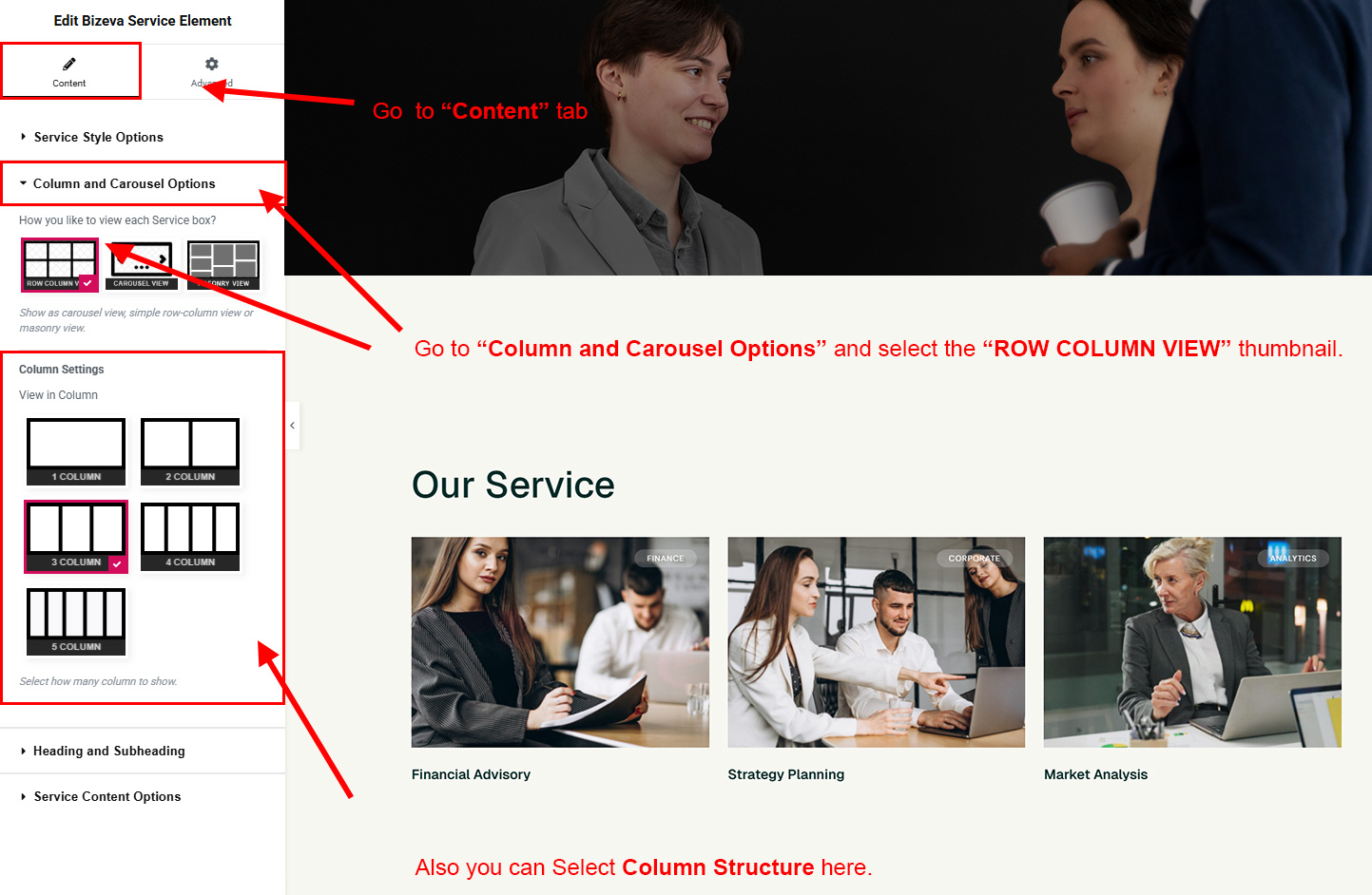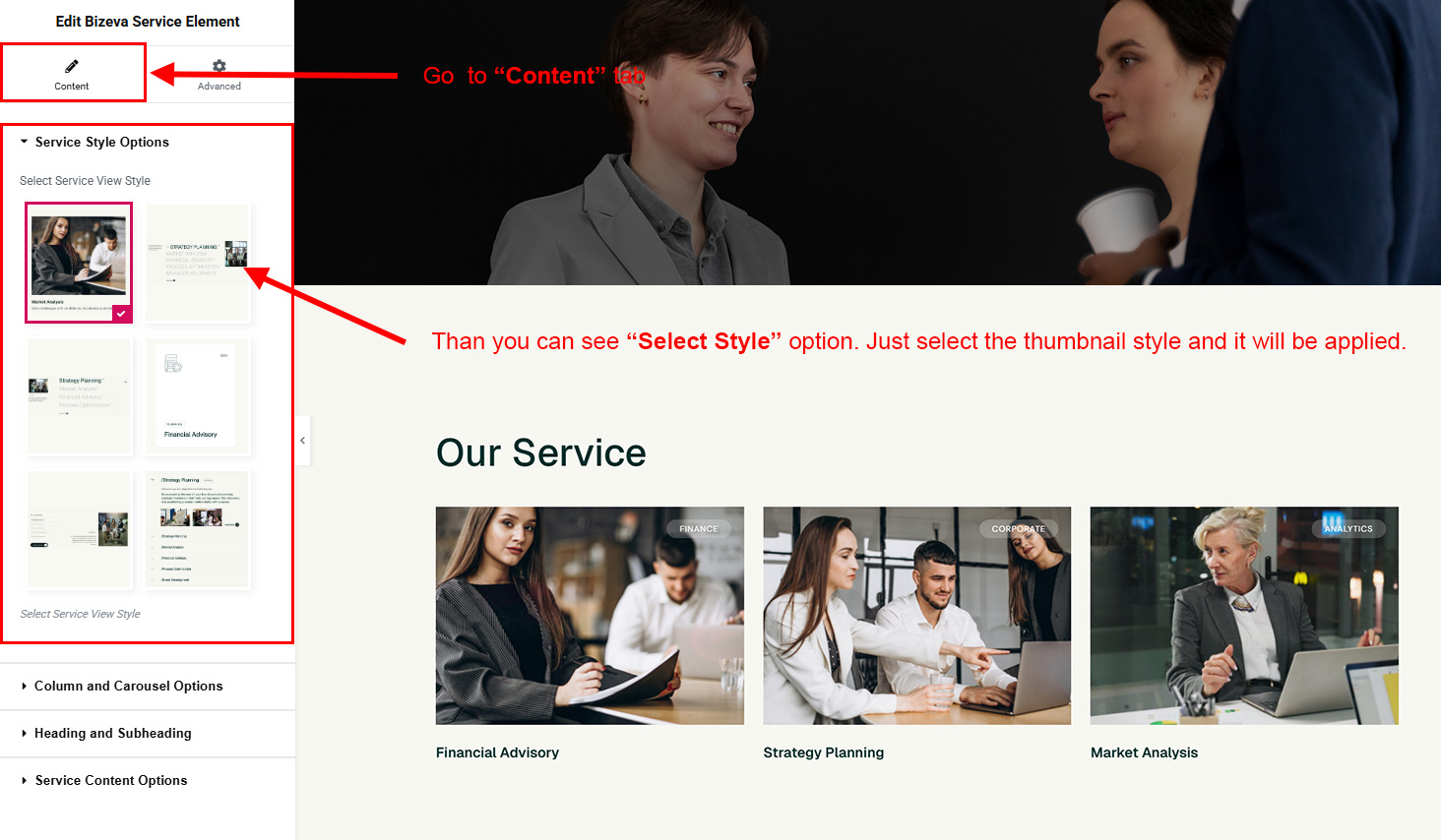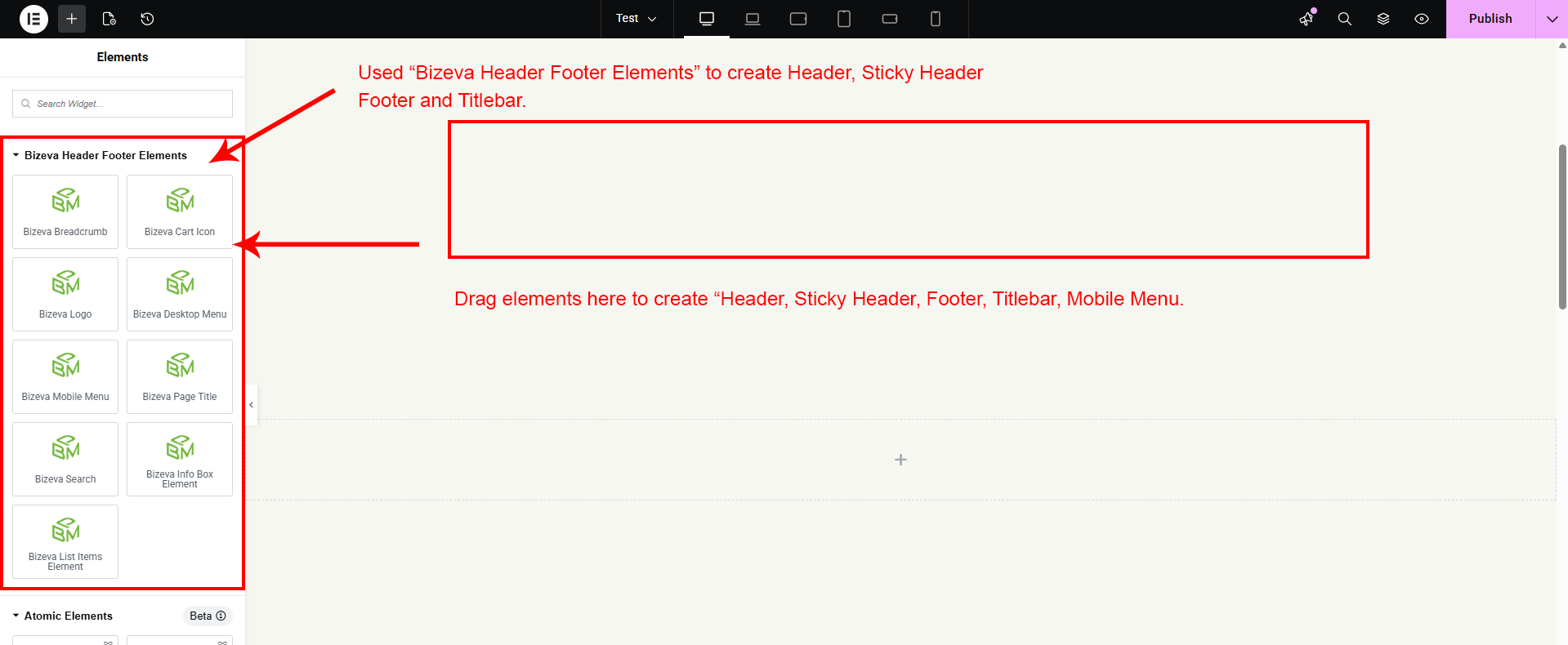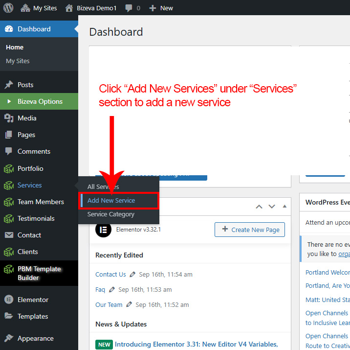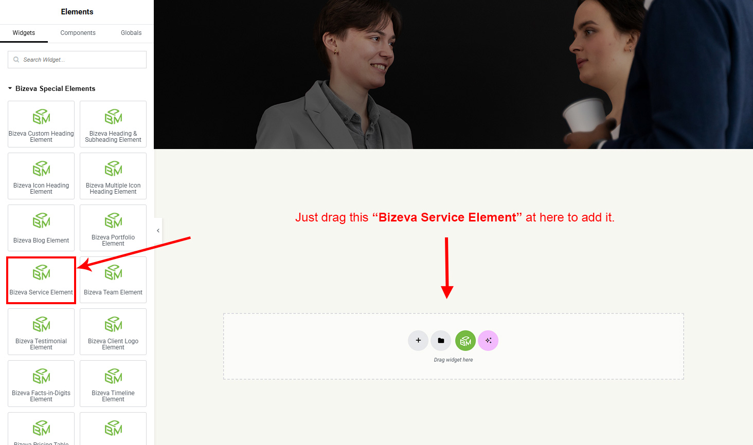 Now we have some Service posts. So we can show all Service on a page. Create a new page and add Bizeva Service Element on a page by dragging it.