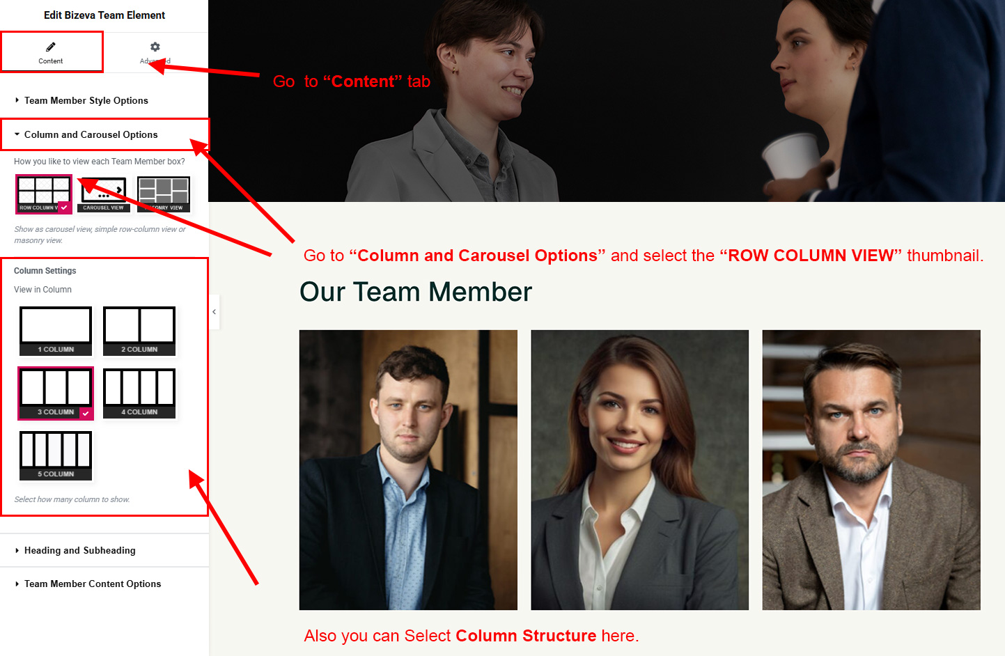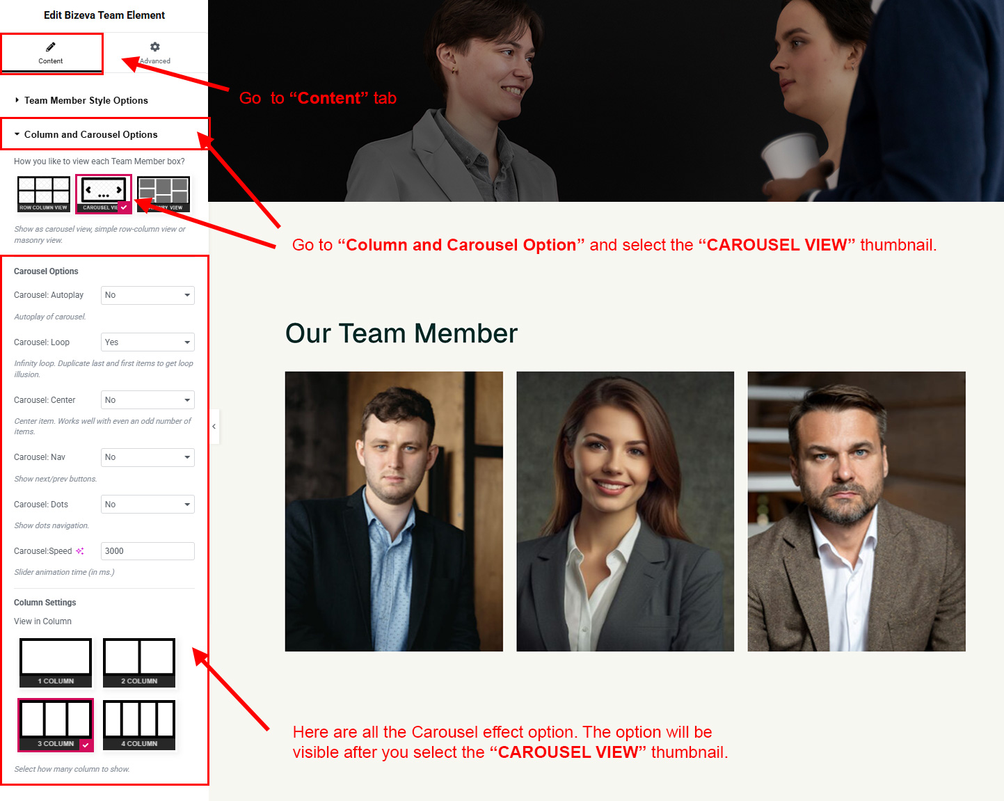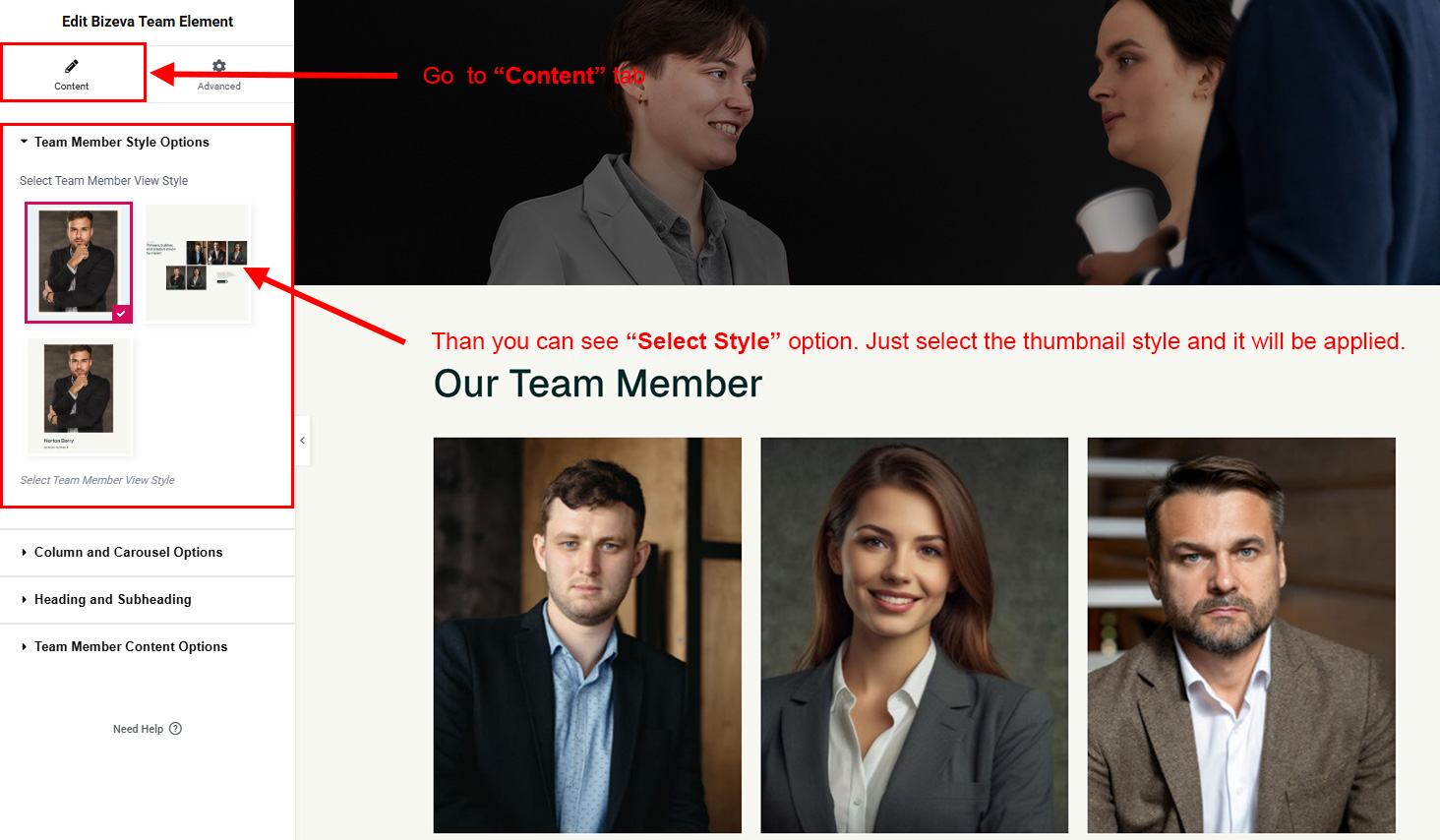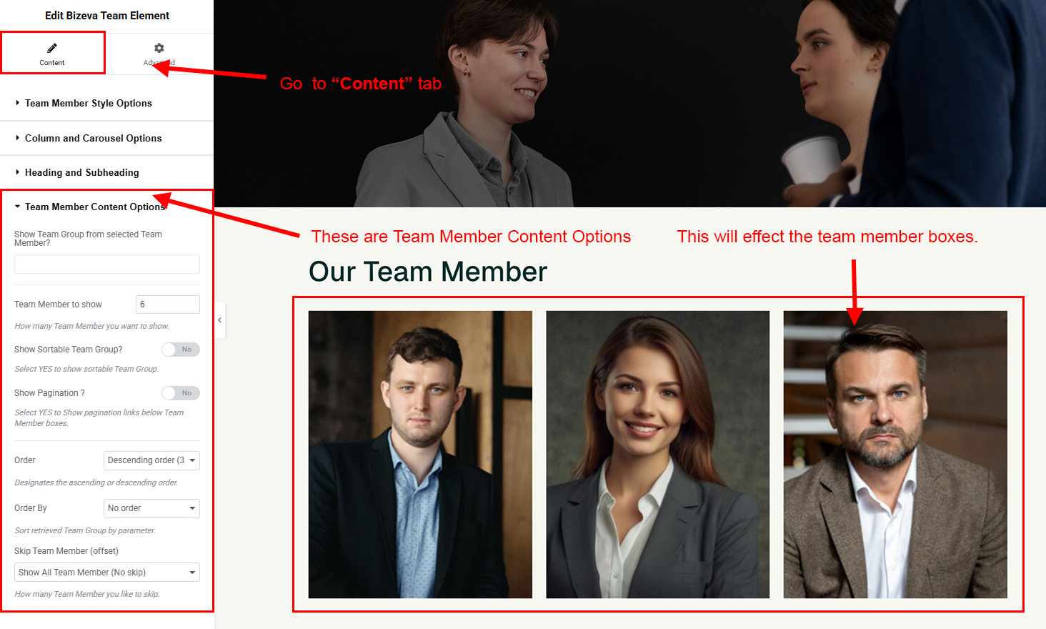 You can select the team options here. Like how many team you like to show, show team from selected category, team order etc.