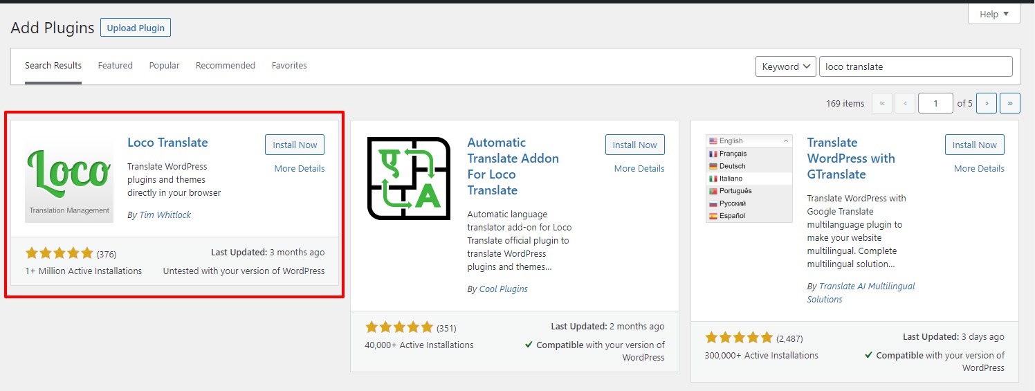 1. First you need to install "Loco Translate" plugin. So just go to Plugins > Add New section and search for "Loco Translate" plugin.