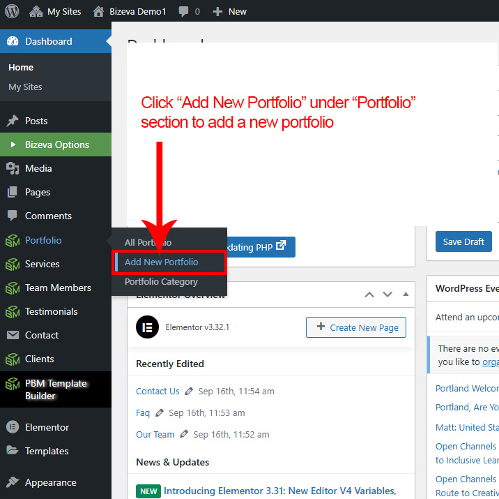 First go to Portfolio >> Add New to create a new Portfolio.