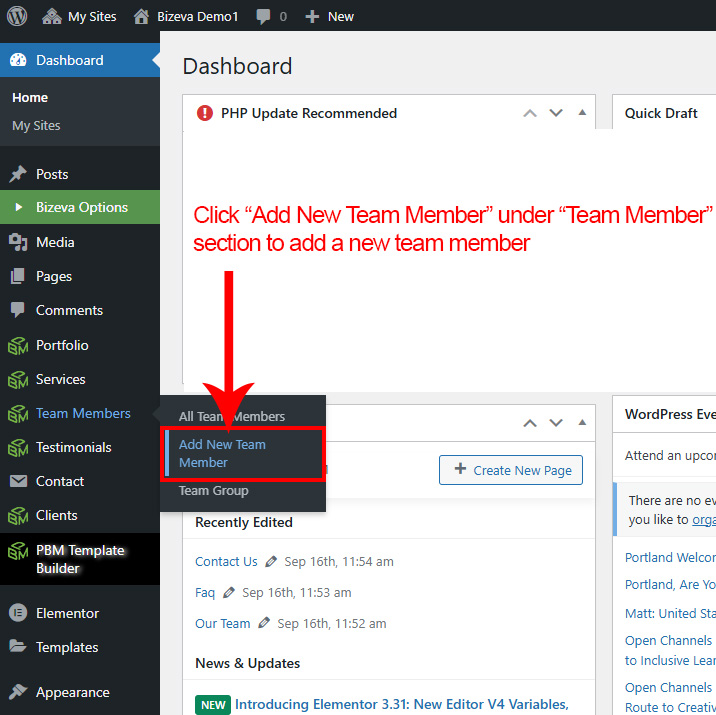 First go to Team >> Add New to create a new Team.