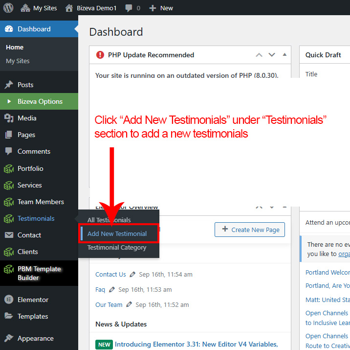 First go to Testimonial >> Add New to create a new Testimonial.