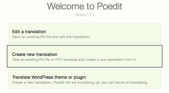 Open the bizeva.pot in POEdit by selecting "New from POT/PO file...".