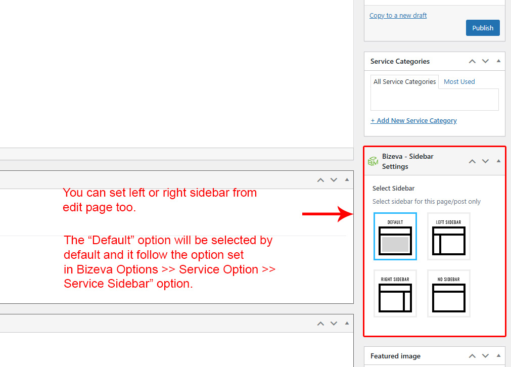 This is specially created sidebar postion for Service single view only. You can select sidebar view (left or right) in Bizeva Options >> Service Options section. Also you can show single Service without sidebar too.