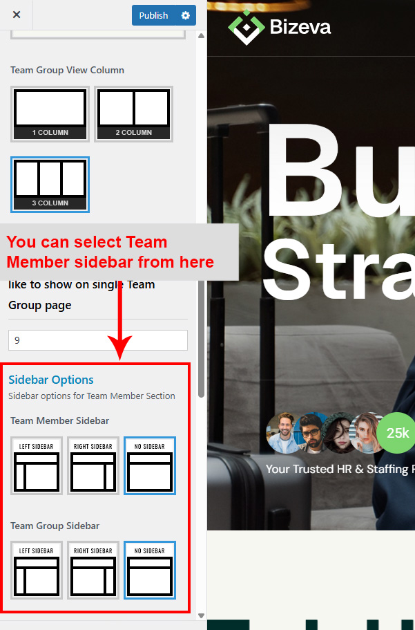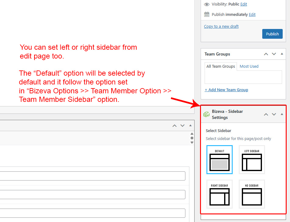 This is specially created sidebar postion for Team Group view only. You can select sidebar view (left or right) in Bizeva Options >> Team Member Options section. Also you can show Team Group without sidebar too.