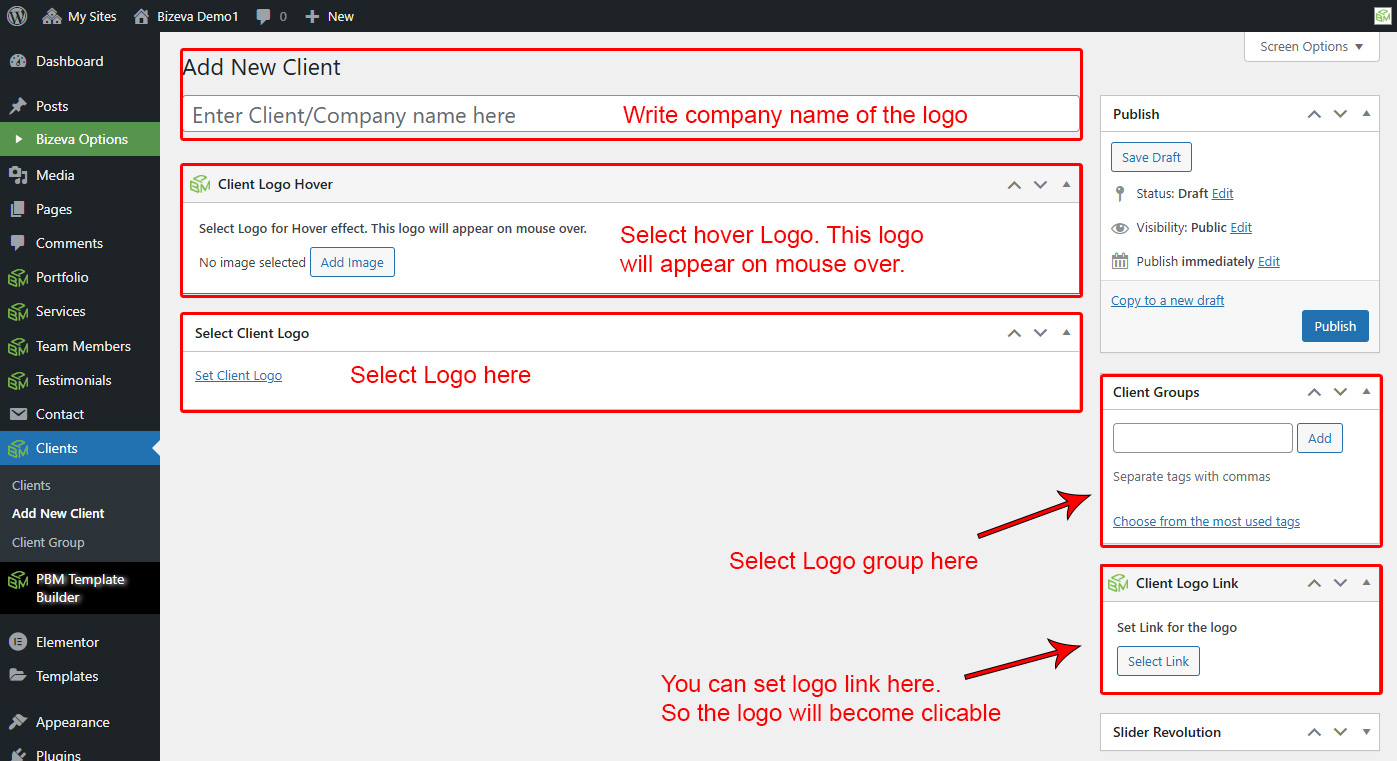 First go to Clients >> Add New to add a new logo.