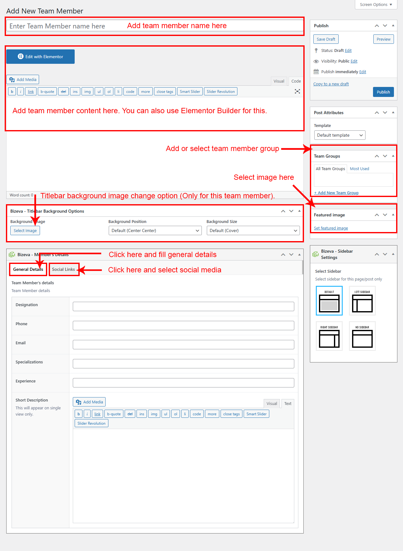 If you already done demo content setup than you can edit existing Team and check how we added data so you can understand each option perfectly.